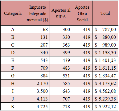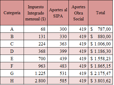 Durante el año 2016 el componente que se pagaba de Aportes al SIPA era de $ 157, por lo cual este importe casi se duplica para la Categoría A y en el caso de la última categoría llegaría a ser casi 5 veces mayor a lo que se pagaba en el año anterior.